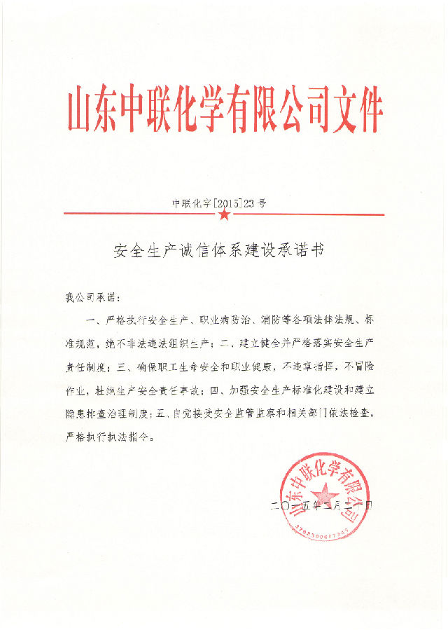2015年2月20日《安全生產(chǎn)誠信體系建設承諾書》……