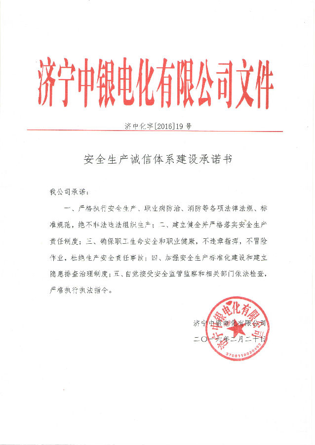 安全生產(chǎn)誠信體系建設承諾書 2016-2-21